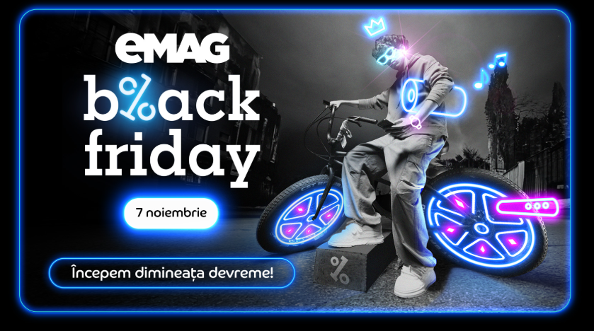 Pe 7 noiembrie 2025 are loc cea mai așteptată zi de shopping online din an pentru români: Black Friday-ul eMAG. Campania se desfășoară, ca de obicei, doar pentru 24 de ore, iar ora de start nu este anunțată oficial din timp. Asta face loc unui joc interesant pentru cititorii Mobilissimo, care pot ghici ora exactă de lansare a ofertelor și, dacă o nimeresc sau se apropie suficient, pot pleca acasă cu unul dintre cele 3 premii puse în joc.