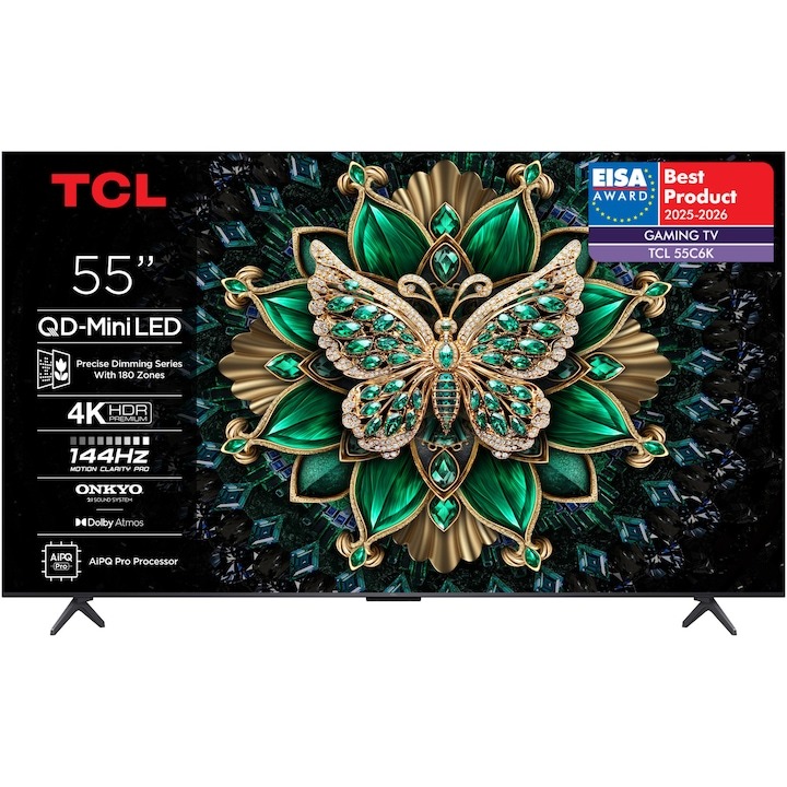 Reducerea masivă aduce televizorul TCL QD-MiniLED 55C6K (model 2025, 139 cm, 4K, 144Hz, Dolby Vision IQ, HDMI 2.1, Google TV) la doar 1.954 lei pe eMAG, dacă aplici codul electrocasnice în coș (preț redus din 2.299 lei; 54% sub PRP-ul de 4.999 lei). Include 5 ani garanție la înregistrare și specificații de top pentru gaming, filme și sport. 🎮📺⚡