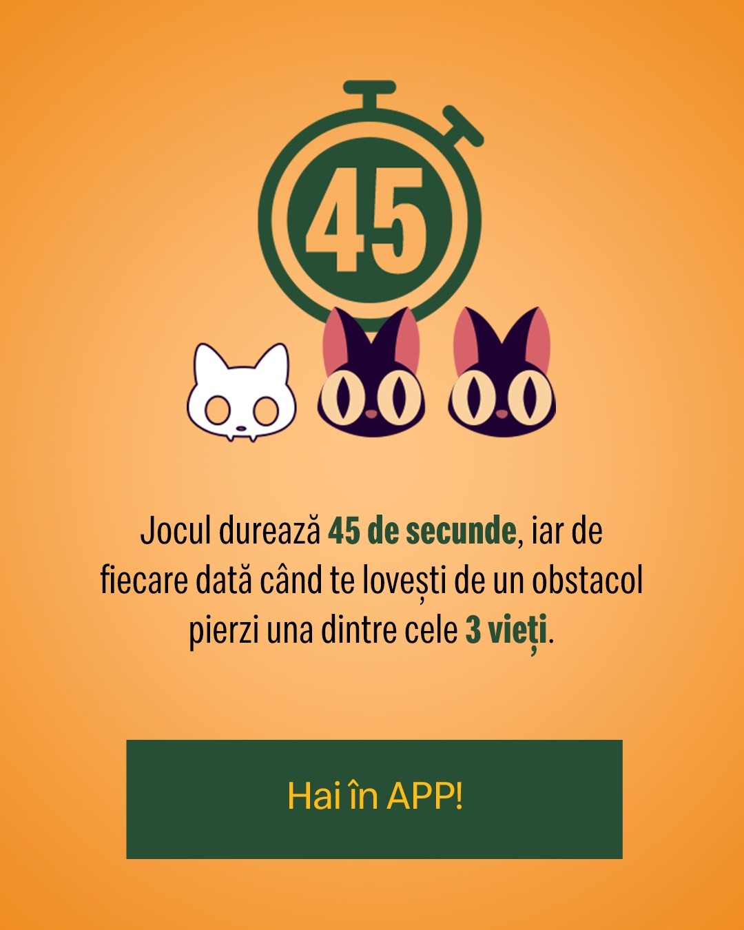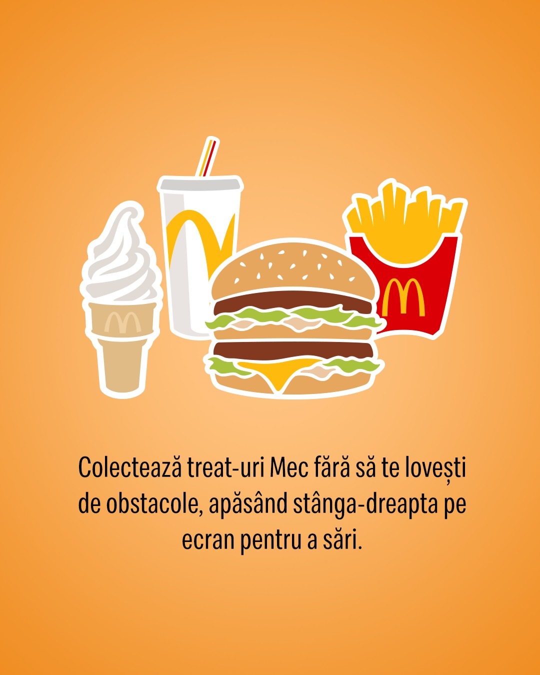 - Folosind 100 de puncte pentru fiecare sesiune de joc, controlează pisica pentru a colecta 10 produse McDonald’s în 45 de secunde.