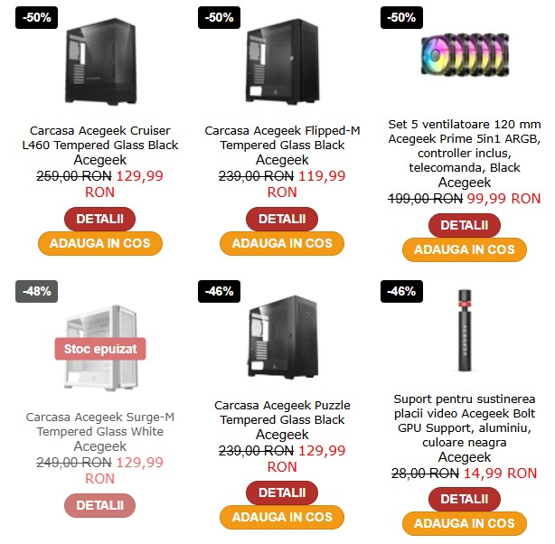 Shop4PC dă startul Black Friday cu reduceri masive la componente și accesorii PC. Ai carcase Acegeek și Lian Li la jumătate de preț, seturi de ventilatoare ARGB cu controller inclus de la doar 99,99 lei și cabluri RGB adresabile cu până la 41% reducere. Găsești și periferice de gaming Xtrfy și Lamzu cu discounturi de până la 36%. Stocurile sunt limitate, ofertele sunt deja active! Ofertele sunt disponibile aici!🖥️⚙️🔥