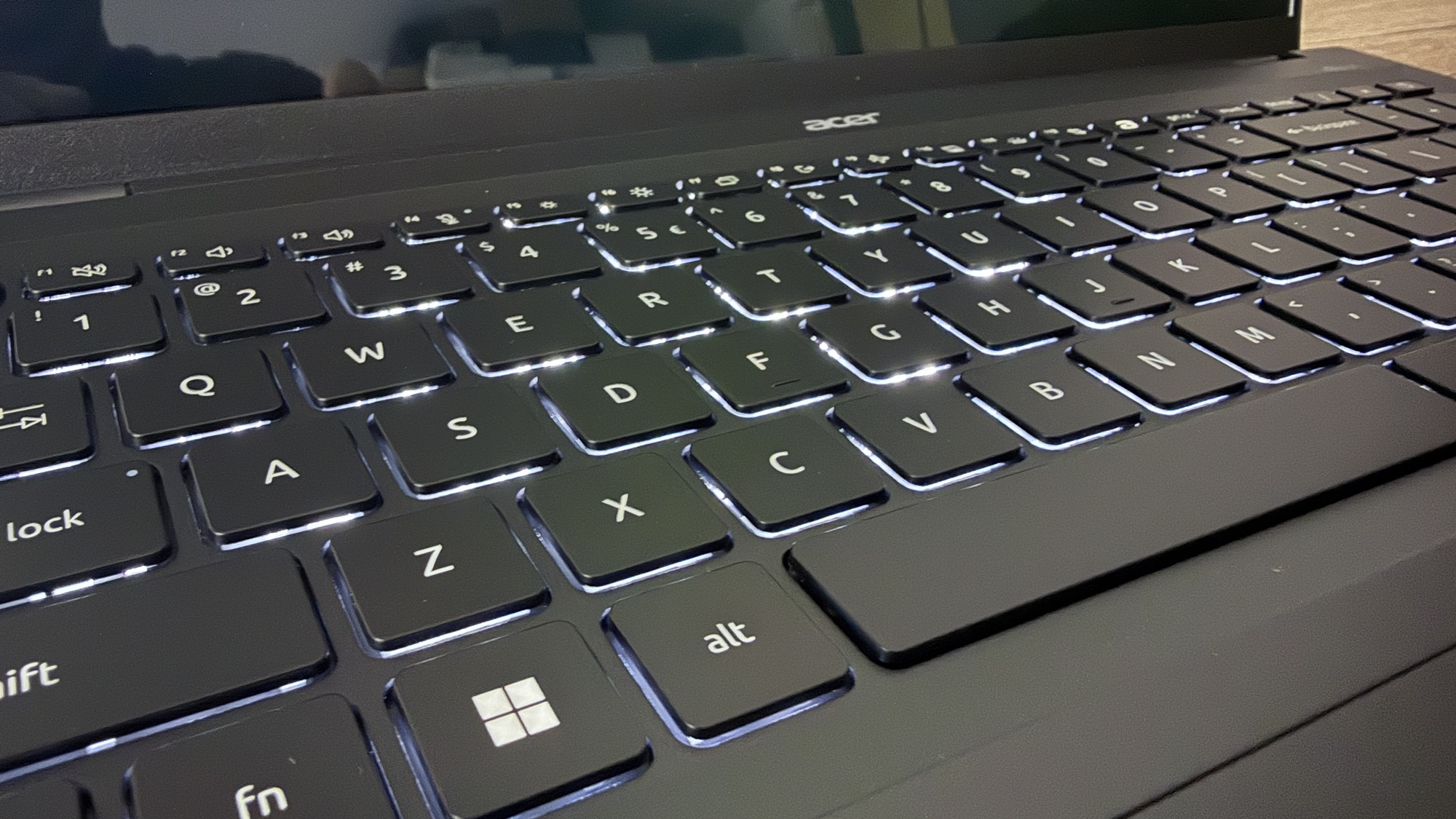 Tastatura este bine iluminată, cu o lumină albă uniformă. Cursa tastelor este confortabilă, iar feedback-ul este plăcut. Scrisul prelungit nu obosește, iar layout-ul numeric din partea dreaptă este binevenit, chiar dacă e compact și necesită puțin timp de acomodare. Touchpad-ul este generos ca dimensiuni, precis și fin la atingere. Suportă toate gesturile standard din Windows, iar iluminarea subtilă a logo-ului atunci când sunt folosite aplicațiile AI reprezintă un mic artificiu de design care îmbogățește experiența.