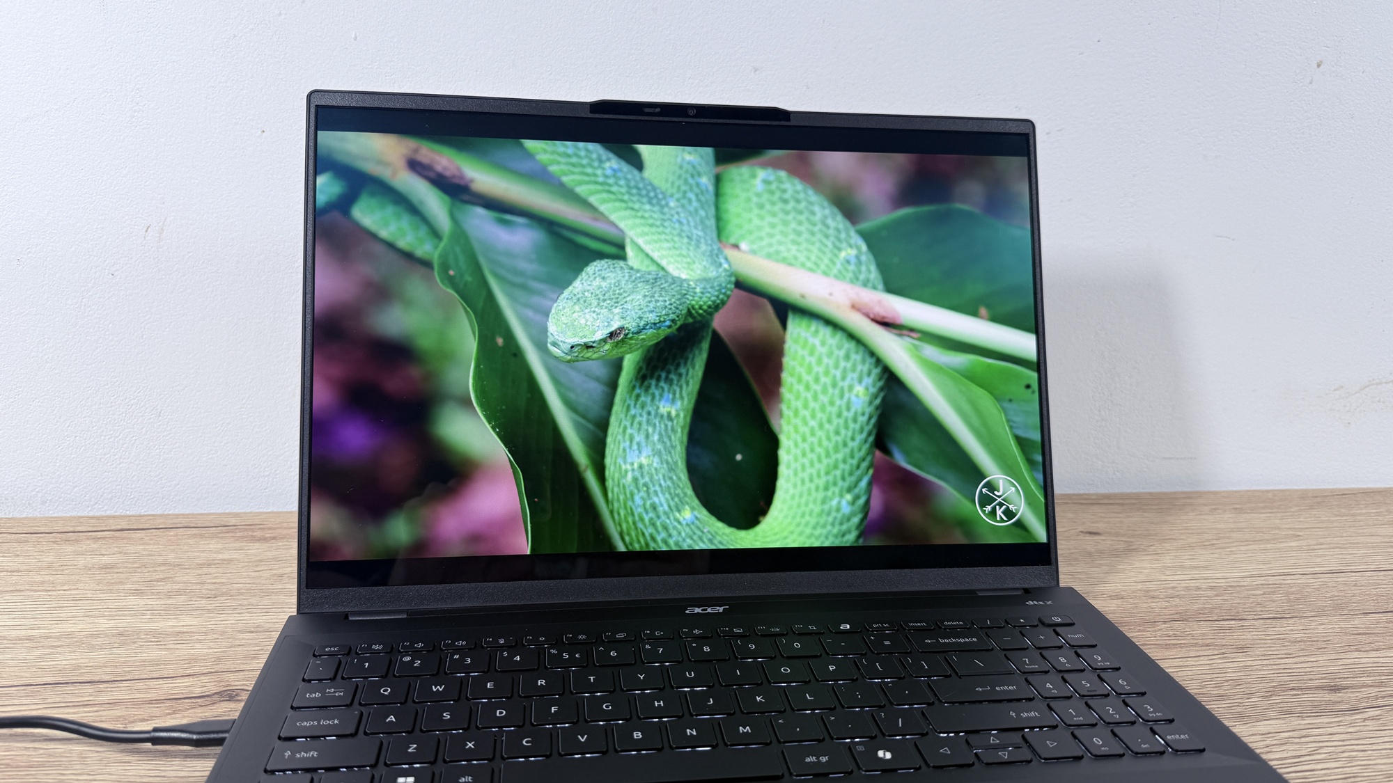 Panourile OLED sunt la mare căutare, iar Swift 16 AI nu face rabat la calitate. Avem un ecran de 16 inch cu rezoluție 2880 × 1800 pixeli (3K) și refresh rate de 120 Hz. Negrul profund, contrastul excelent și culorile vibrante ies imediat în evidență. Indiferent dacă urmărești filme, editezi fotografii sau lucrezi în aplicațiile Office, imaginea este clară, intensă și plăcută.
