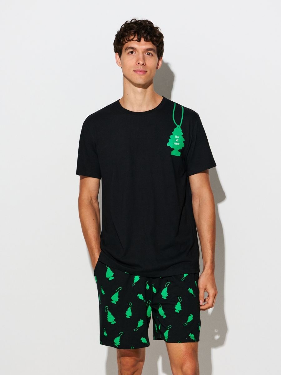 Pijamaua din bumbac în două piese cu imprimeu de la Sinsay, la 39,99 lei, e o alegere confortabilă și practică, mai ales că are buzunare – detaliu rar la astfel de modele. Cu ocazia Black Friday, dacă adaugi în coș un al doilea produs, acesta primește 50% reducere cu codul BLACK50. Merită să profiți cât mai e disponibilă. 💤🖤🧦