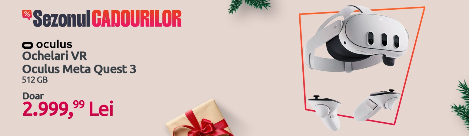 • Oculus Meta Quest 3, varianta cu 512GB, costă 2.999,99 lei – ideal dacă vrei să intri în VR fără alte echipamente.