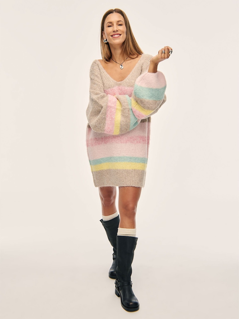 Rochia tricotată exclusivă de la Kamila Šikl, în nuanță bej și fabricată 85% din materiale reciclate, este acum 251,66 lei pe ABOUT YOU, redusă de la 297,90 lei cu extra 5% aplicat automat. Prețul actual e și cel mai mic din ultimele 30 de zile, iar stocul e aproape epuizat. Dacă îți face cu ochiul, nu mai aștepta! 🤍👗⏳