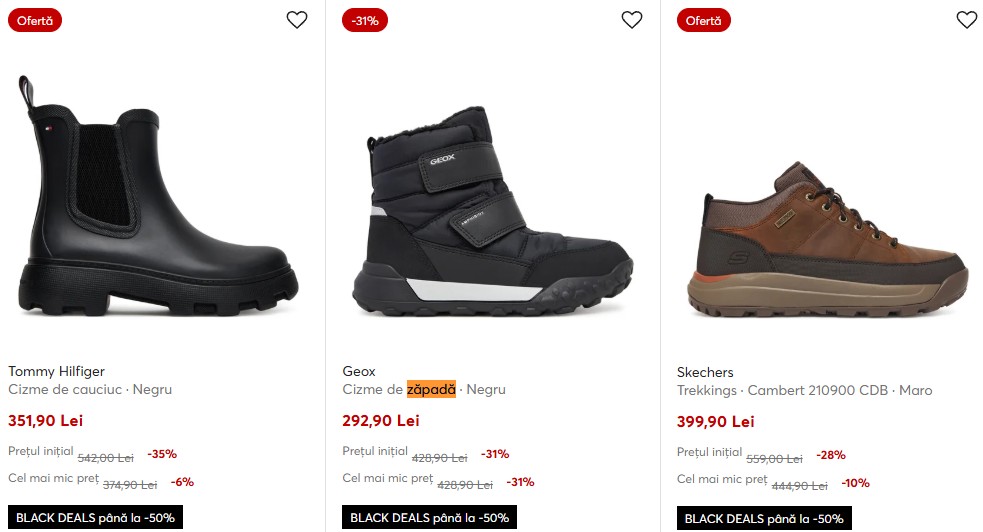 Iată și cele mai mici prețuri din Black Deals pe epantofi.ro:
