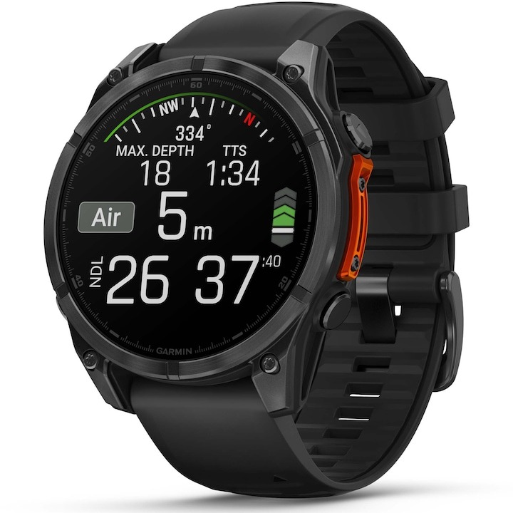 Garmin fenix 8, smartwatch premium cu ecran AMOLED de 1,4 inch, carcasă din oțel și autonomie de până la 12 zile, costă acum 3.779 lei la eMAG cu codul electroweekend (10% reducere din 4.199,99 lei). Are GPS multi-band, microfon, difuzor, Garmin Pay și lanternă integrată. (există și varianta resigilată la 3.649 lei, dar cu zgârieturi și urme serioase de utilizare) 🧭⌚🚵♂️