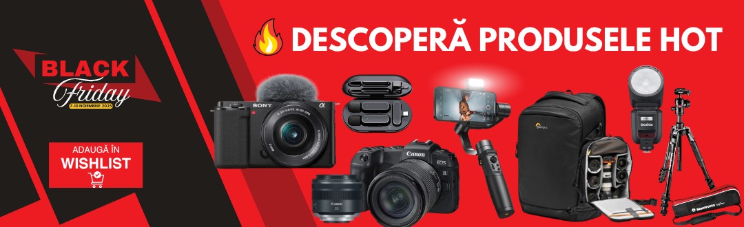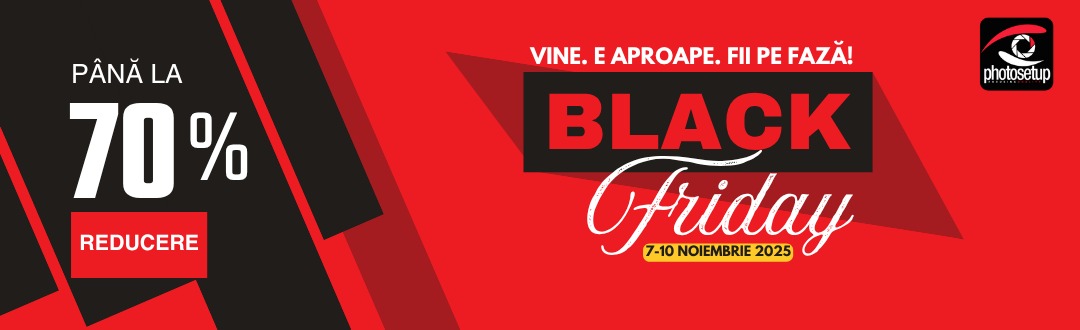 Photosetup dă startul campaniei de Black Friday 2025 în perioada 7-10 noiembrie, cu reduceri de până la 70% la o selecție extinsă de produse destinate pasionaților de fotografie și video. Campania rulează exclusiv online, iar accentul este pus pe echipamente de top de la Sony și Canon.