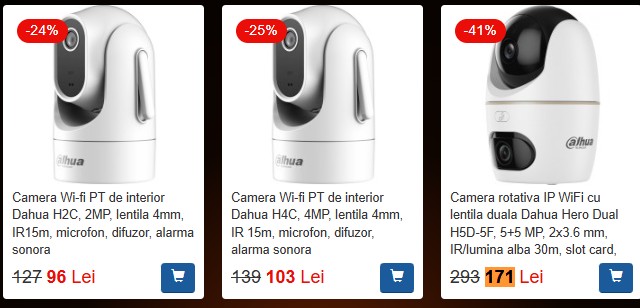 O parte dintre camerele Dahua au scăzut și cu peste 40%, mai ales modelele wireless și entry-level — perfecte dacă vrei ceva simplu, rapid de instalat și fiabil. Pe de altă parte, ofertele pentru camerele profesionale de 8MP sau cele motorizate / varifocale rămân foarte atractive pentru cei care vor claritate și control maxim. Pe scurt, e un moment bun să investești într-un sistem de supraveghere solid, fie că vorbim de curte, firmă sau apartament. Reducerile sunt clare, prețurile finale includ TVA, iar gama acoperă cam tot ce ți-ar trebui.