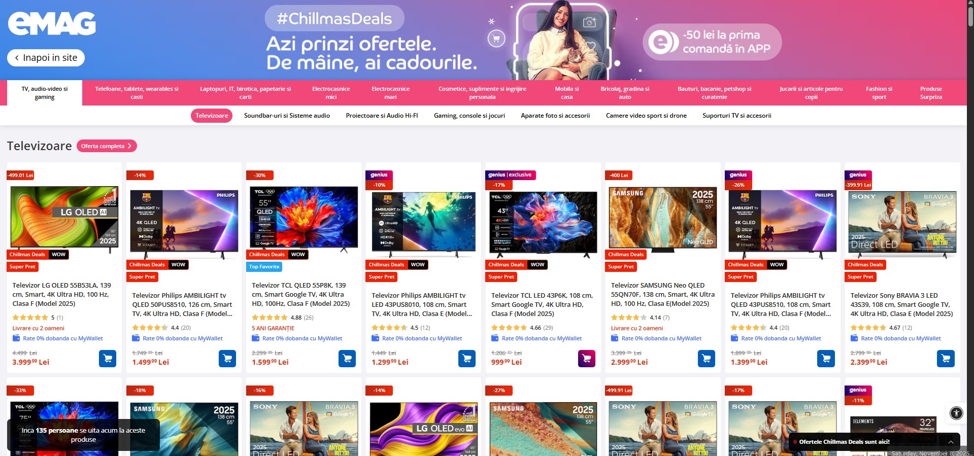 După aglomerația de Black Friday, eMAG revine cu o nouă campanie promoțională, Chillmas Deals, care aduce reduceri atractive la produse din categorii variate, dar și surprize neobișnuite. Nu e Crăciunul încă, dar retailerul pare hotărât să continue valul de oferte și să scoată în față ideea de cadouri timpurii, fie pentru tine, fie pentru cei dragi.