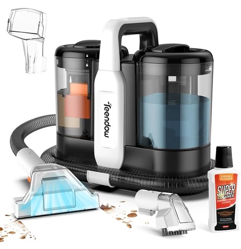 Aspiratorul Teendow C5 pentru curățarea covoarelor, cu putere de 450W, 11kPa și rezervor de 1500ml, are acum un preț redus la 480 lei, față de 572 lei inițial. Curăță eficient petele de pe tapițerie, este silențios (≤80dB), portabil și rezistent la apă (IPX4). Oferta este valabilă pe Geekbuying.🧼🧲🚿