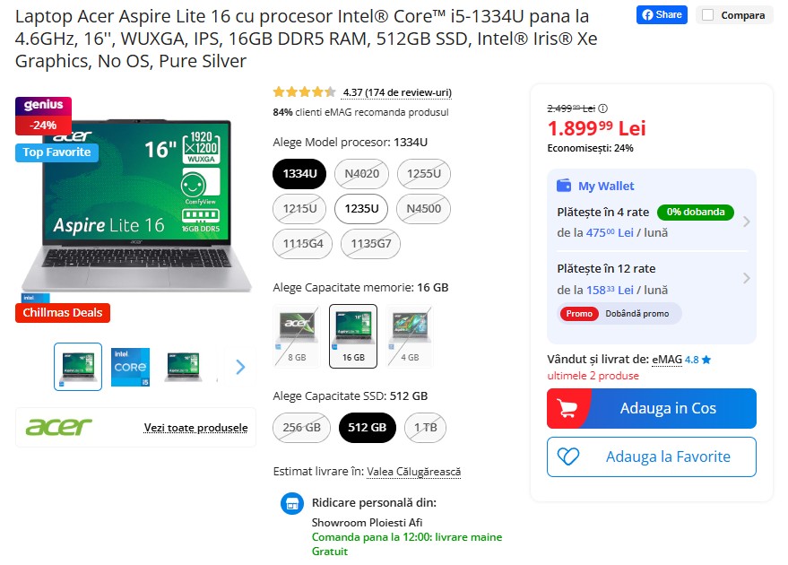 Laptopul Acer Aspire Lite 16 cu Intel Core i5-1334U, ecran WUXGA de 16 inch, 16GB RAM DDR5 și SSD de 512GB a ajuns la 1.899 lei pe eMAG, redus cu 24% față de prețul inițial de 2.499 lei. Este o opțiune echilibrată pentru office și multimedia, fără sistem de operare preinstalat. Sunt disponibile doar 2 bucăți în stoc! Comanzi aici!⚙️💻⚡