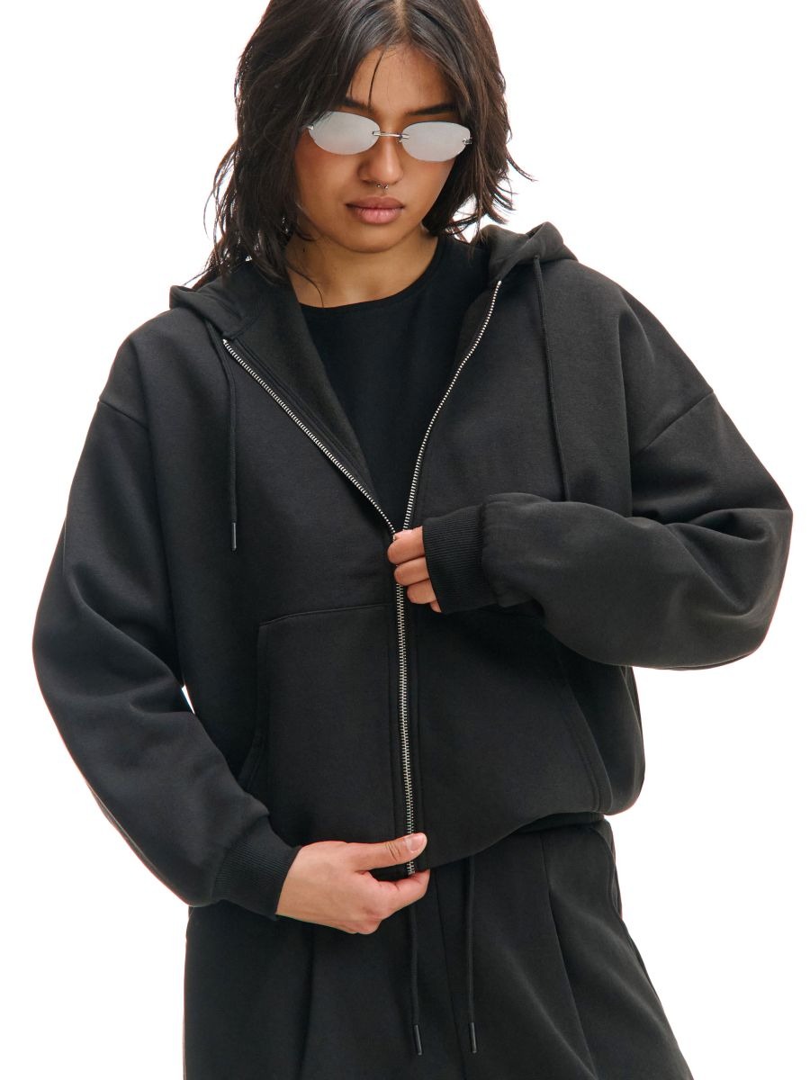 Hanoracul cu glugă și fermoar de la Cropp, din jerseu moale și cu detalii decorative, costă acum 127 lei în loc de 159,99 lei, dacă folosești codul PROMO20. Are croi regular, buzunare laterale și glugă lată – perfect pentru sezonul rece. Promoția e valabilă doar pentru o perioadă limitată pe cropp.com! 🖤🧥⚠️