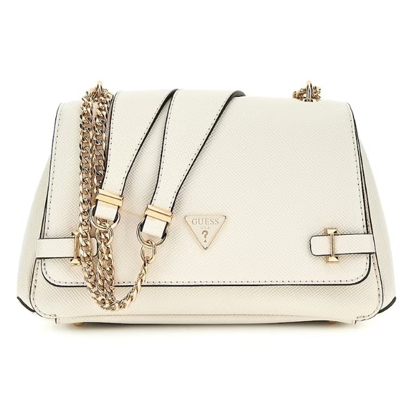 Geanta mică GUESS din piele ecologică, cu bareta de umăr ajustabilă, este acum 369,99 lei pe Fashion Days, redusă cu 47% față de prețul inițial de 702,60 lei. Este model casual, compactă (14x24x8 cm), în nuanță alb murdar, cu detalii aurii și închidere cu clapetă. Livrarea este gratuită, iar stocul este foarte limitat. 📦👜✨