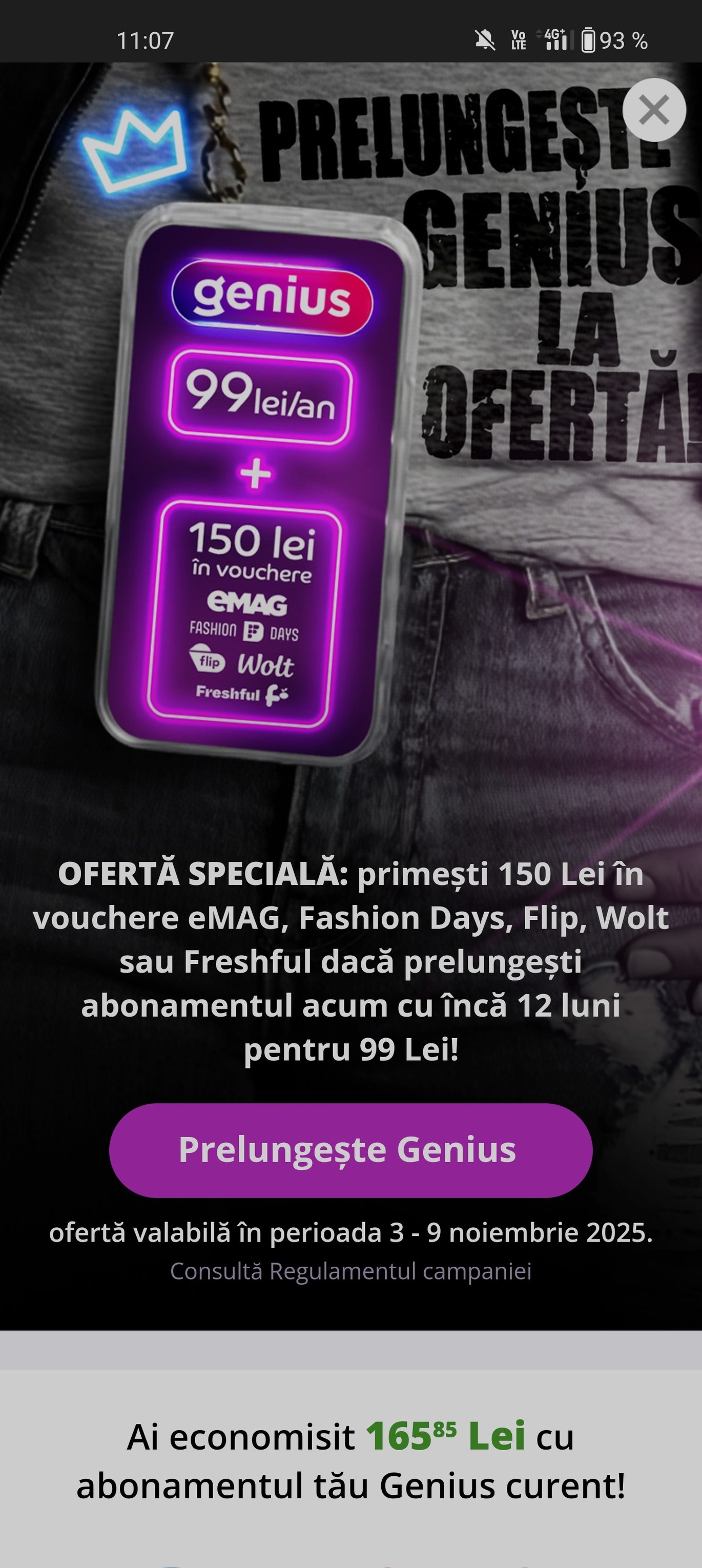 Pentru cei care nu au încă abonament Genius, există un pachet special: dacă îl activezi de Black Friday, plătești 49 de lei pentru primul an și primești vouchere în valoare de 250 lei (împărțite între eMAG, Fashion Days și Flip). Oferta este disponibilă doar pentru cei care activează serviciul pentru prima dată.