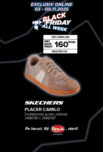 Pantofii Skechers Placer Camilo pentru bărbați sunt acum 160 lei la Hervis, cu 51% mai ieftini față de prețul recomandat de revânzare de 330 lei. Confortabili, ușori și perfecți pentru ținute casual de zi cu zi, sunt o alegere inspirată în oferta Black Friday – varianta disponibilă este pe negru. 👟🖤🛍️