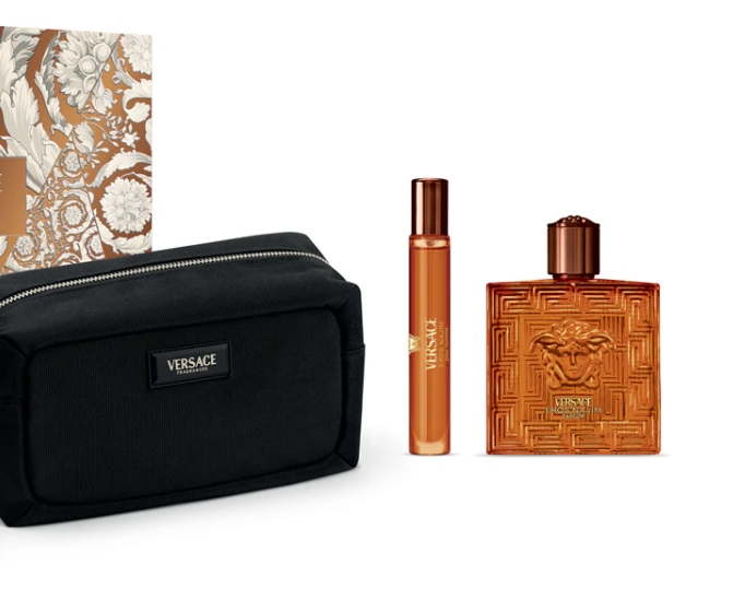 Setul cadou Versace Eros Najim pentru bărbați, compus din parfum 100 ml, mini 10 ml și geantă de cosmetice, poate fi cumpărat acum cu 370 lei pe Notino, redus de la 462 lei dacă aplici codul fragrance în coș. Notele de caramel, cardamom și smirnă îi dau o amprentă oriental-lemnoasă sofisticată. Primești și livrare gratuită 🎁🧳🔥.