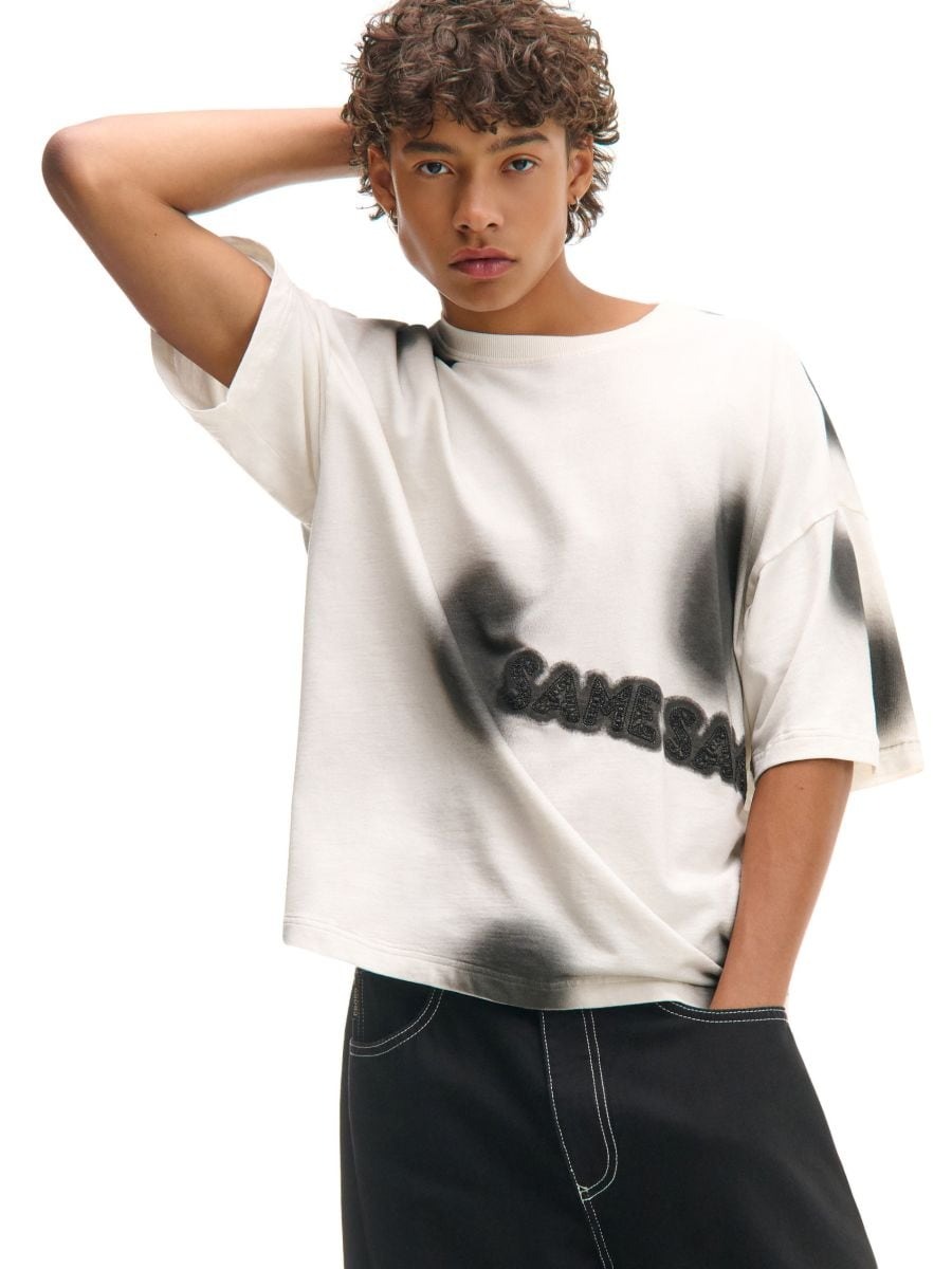 Tricoul alb cu model estompat de la Cropp, 100% bumbac și croială boxy, e redus de la 49 lei la 39 lei, dar dacă adaugi în coș minimum 3 articole promoționale și aplici codul EXTRA10 până pe 30 octombrie, prețul scade și mai mult – ajunge la doar 35 lei. O alegere lejeră, cu imprimeu cool și preț mic! 👕🖼️💸