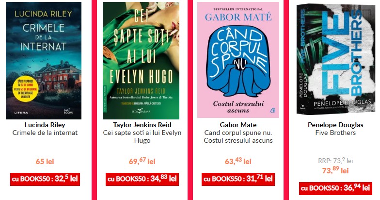 Important: fără codul „BOOKS50”, nu se aplică reducerea, deci nu uita să-l scrii la final, la pasul de plată. Oferta e valabilă doar două zile, deci dacă ți-ai pus ceva deoparte prin wishlist, acum e momentul să le comanzi.