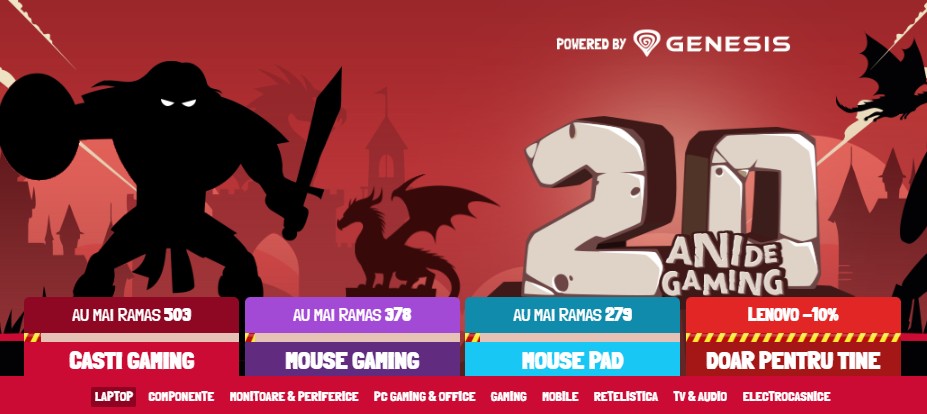 În perioada 13 – 15 octombrie, PC Garage sărbătorește două decenii de gaming cu o super campanie: peste 1000 de periferice Genesis cadou la comenzile de peste 500 RON. Și nu e tot! Ai și reduceri aplicate direct în coș + extra discount la unele produse.