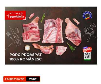 Semicarcasa de porc sfertuită de la Comtim, aproximativ 41,5 kg, are un preț de 16,36 lei/kg, iar costul total ajunge la 679 lei. E o alegere practică pentru cei care vor carne proaspătă în cantitate mare, mai ales pentru sărbători. Livrarea e gratuită în București, iar produsul e foarte bine evaluat pe eMAG! 🐖📦🥩
